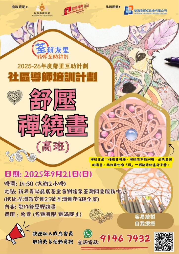 21/9「禪繞畫高班」費用全免,名額有限!