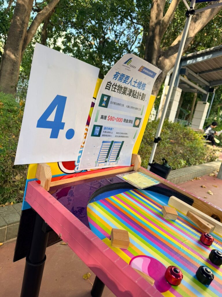 透過聯同市區重建局合辦之嘉年華攤位遊戲以輕鬆愉快既方式宣傳及推廣有關樓宇復修及如何遵從消防安全指示資訊